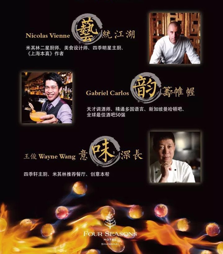11月16日至19日,上海四季酒店特别邀请米其林星级大厨、美食设计师Nicolas Vienne与全球最佳酒吧曼哈顿吧的明星调酒师Gabriel Carlos,联手中餐大厨王俊一起于上海四季酒店多个餐厅推出为期三天的美食与艺术的品鉴旅程,让各位食客尽情徜徉于精彩纷呈的活动之中,感受如万花筒般多彩的生活盛宴。