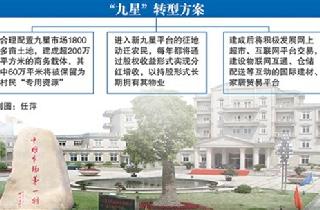 闵行九星村要在10年间拆除每年能带来数亿元利润的大型综合市场,新建200万平方米商务载体,并以多种形式接纳闵行所有经济困难村及村民的投资,搭建一个全区农民和经济困难村持续增收的平台,实现“先富带动后富”的终极梦想。