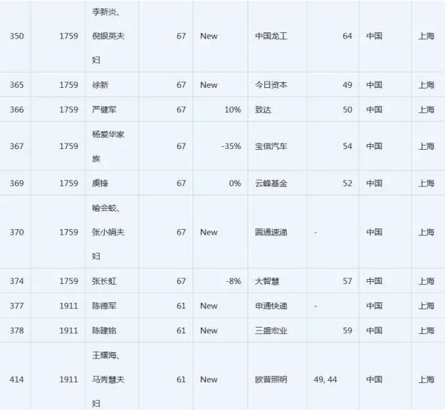 2015年上海富豪名单有谁? 上海最有钱的人是谁?