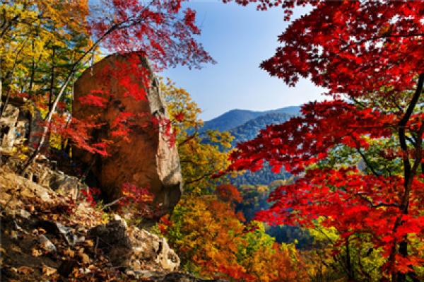 2017首届“中国最美森林”辽宁桓仁枫林谷红枫林。