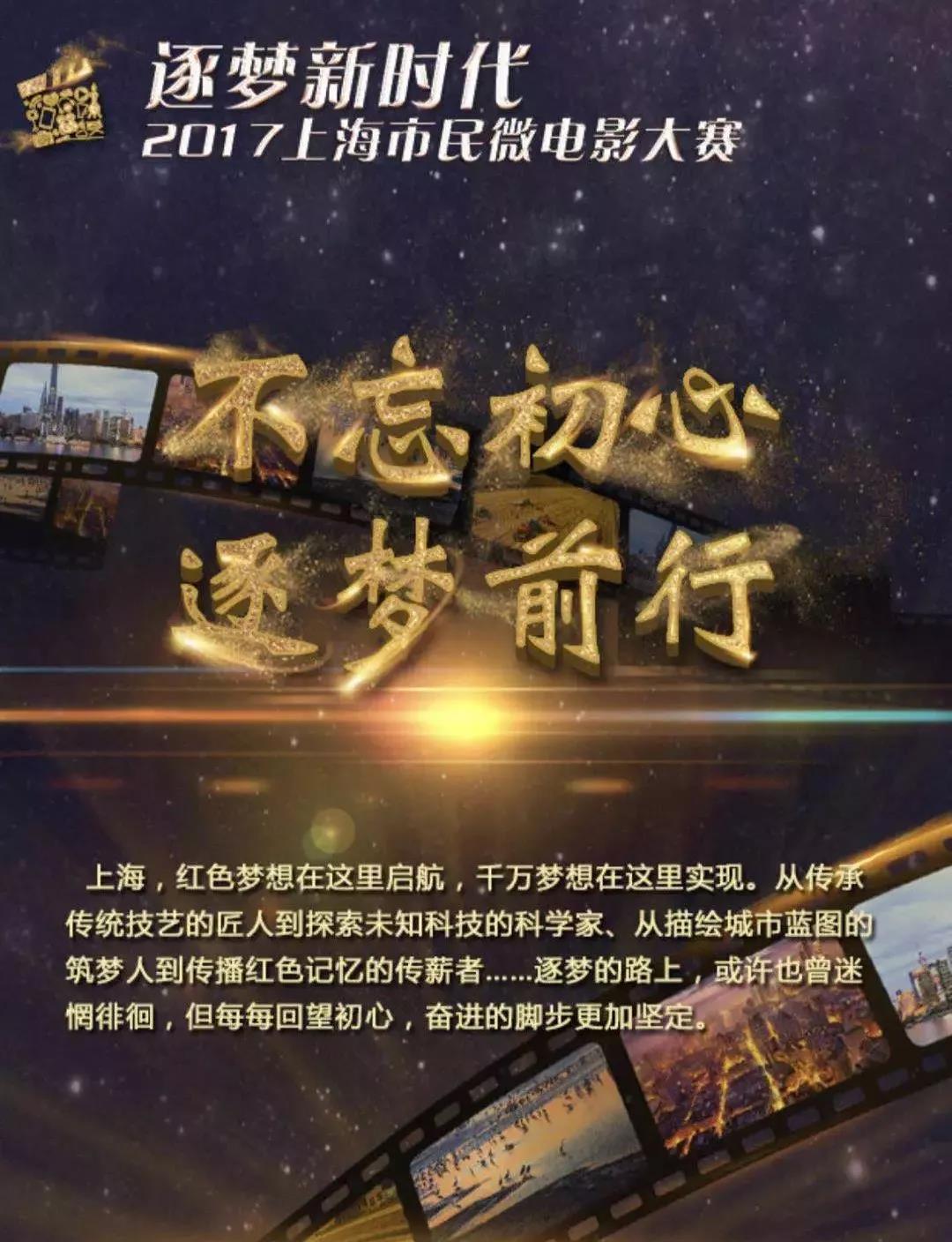 2017年3月,由中共上海市委宣传部、市文明办、市网信办、市文广局、市广播电视台、上影集团、文汇报社主办的“逐梦新时代”市民微电影大赛面向全市启动,社会各界踊跃投稿。截至10月31日,共收到参赛作品800余部。经过初评,50部主题鲜明、视角独特、真挚感人、制作精美的优秀作品脱颖而出。