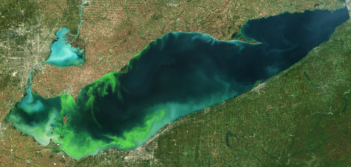 蓝藻离我们并不远。虽然我们肉眼看不到单个或少量的蓝藻,但当它们聚集起来的时候,就成了死水里一片绿油油的水华,有时候甚至可以从太空看到。
