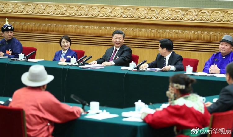 中共中央总书记、国家主席、中央军委主席习近平5日下午来到他所在的十三届全国人大一次会议内蒙古代表团审议。