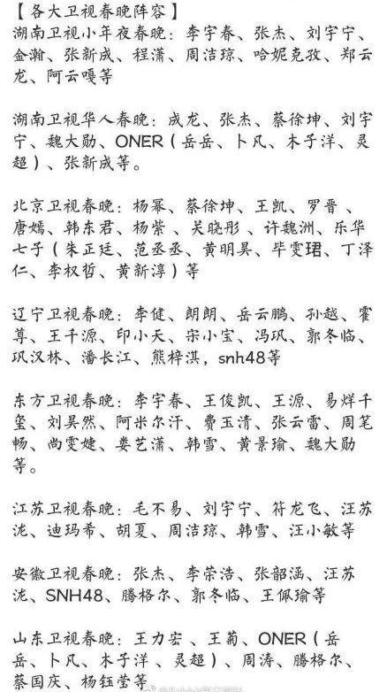 除了湖南卫视的春晚,还有很多卫视春晚也是阵容强大!
