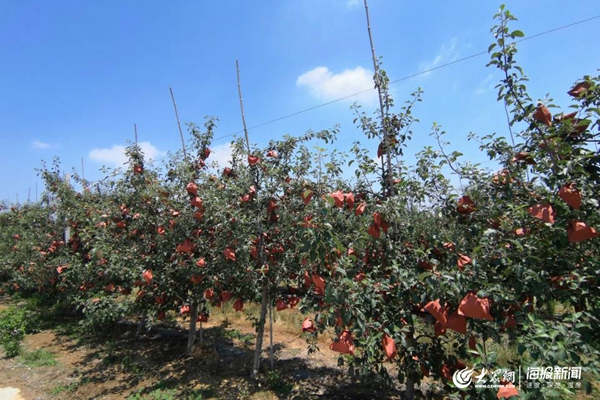 6月11日,在烟台栖霞,大部分果园里的苹果已经套上了袋