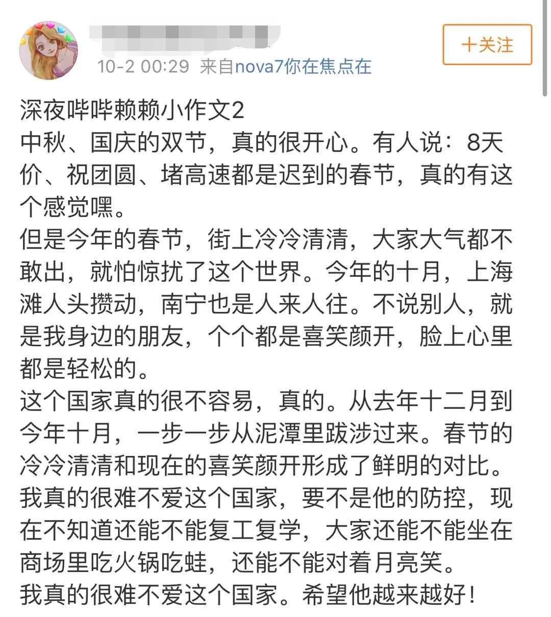 正如网友所说:“这个国家,真的很不容易。”但也正是因为曾经的艰难,才让所有经历过那些惊惶、担忧、迷茫的人,在重回平静的生活后,会倍感山川清秀、岁月温柔,那之前被按下暂停键的团圆饭、那口早就该喝下的老烧酒、还有那个欠下好久的拥抱,都会带给人更强烈的幸福。