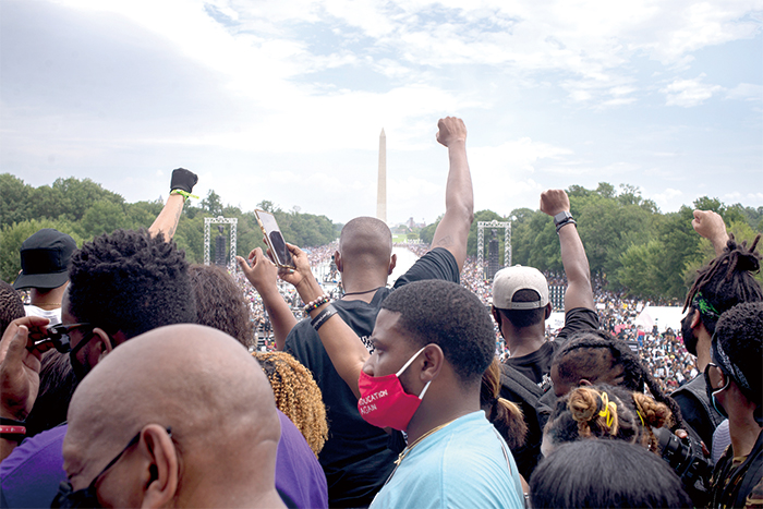 2020年8月28日,人们在美国首都华盛顿林肯纪念堂附近参加反种族歧视和暴力执法示威活动。 新华社发(阿兰 摄)