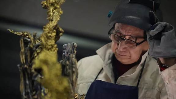 “我是非常喜欢新的东西的,包括我现在七十几岁了还在学,铜的表面处理,视觉的表现力,我们在这方面一直在研究它,所以现在我们看到的,很多的铜器上面的色彩缤纷,千变万化,其实就是这样子一步步走出来,一步步摸索出来的。”朱炳仁的传奇人生,也就在这时正式拉开了大幕。