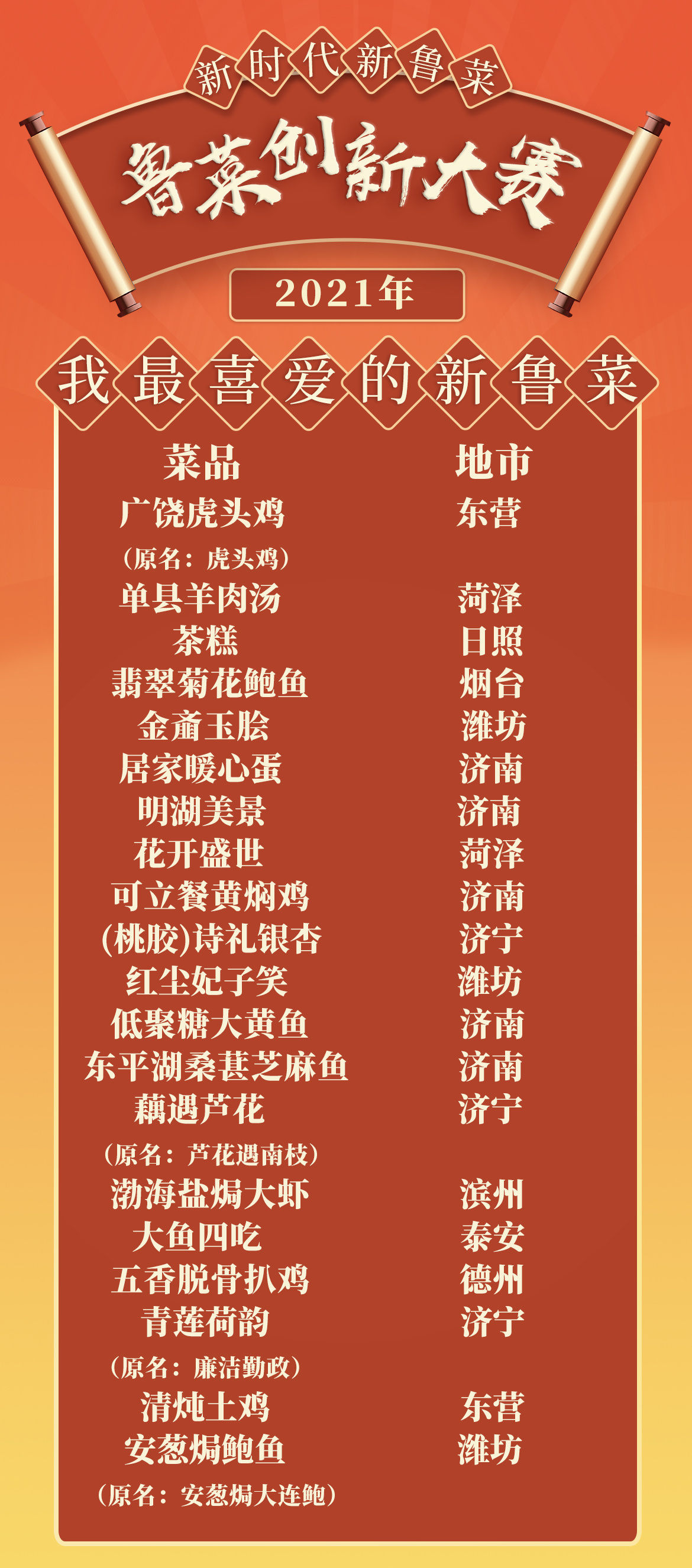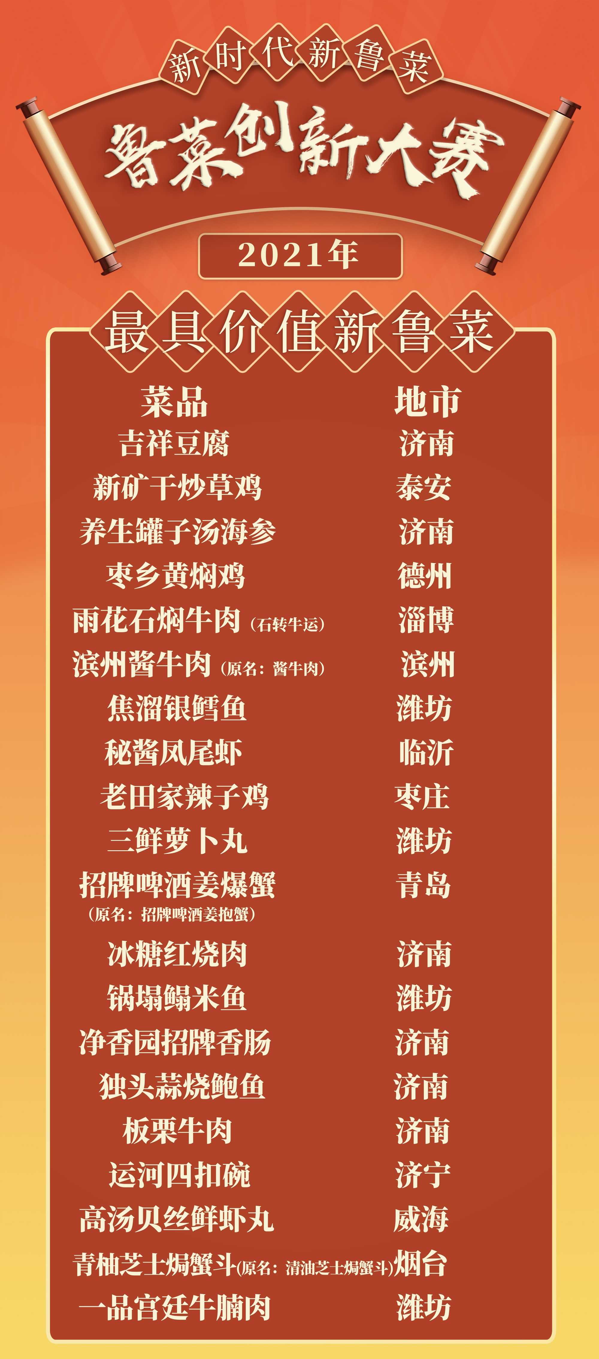 据悉,“新时代 新鲁菜”2021鲁菜创新大赛颁奖典礼将于2022年2月下旬隆重举行。