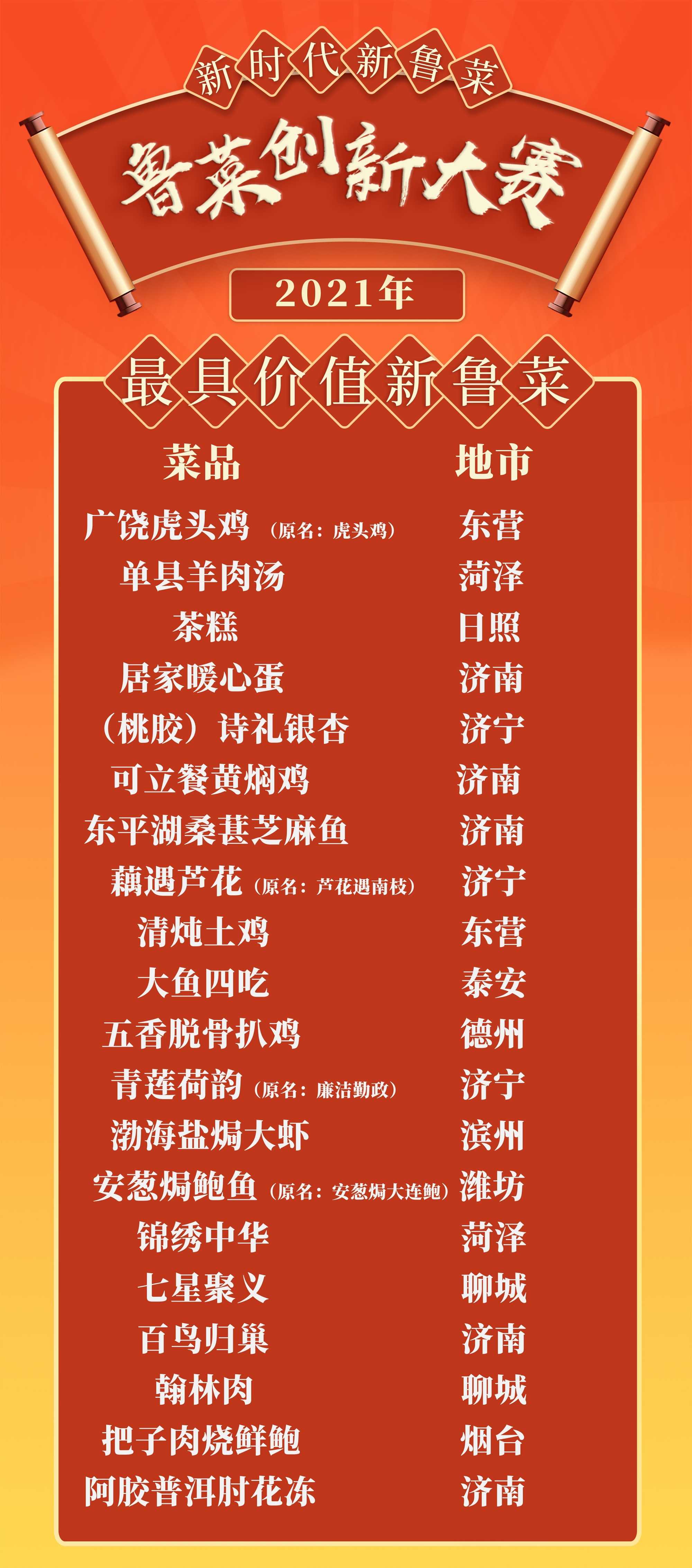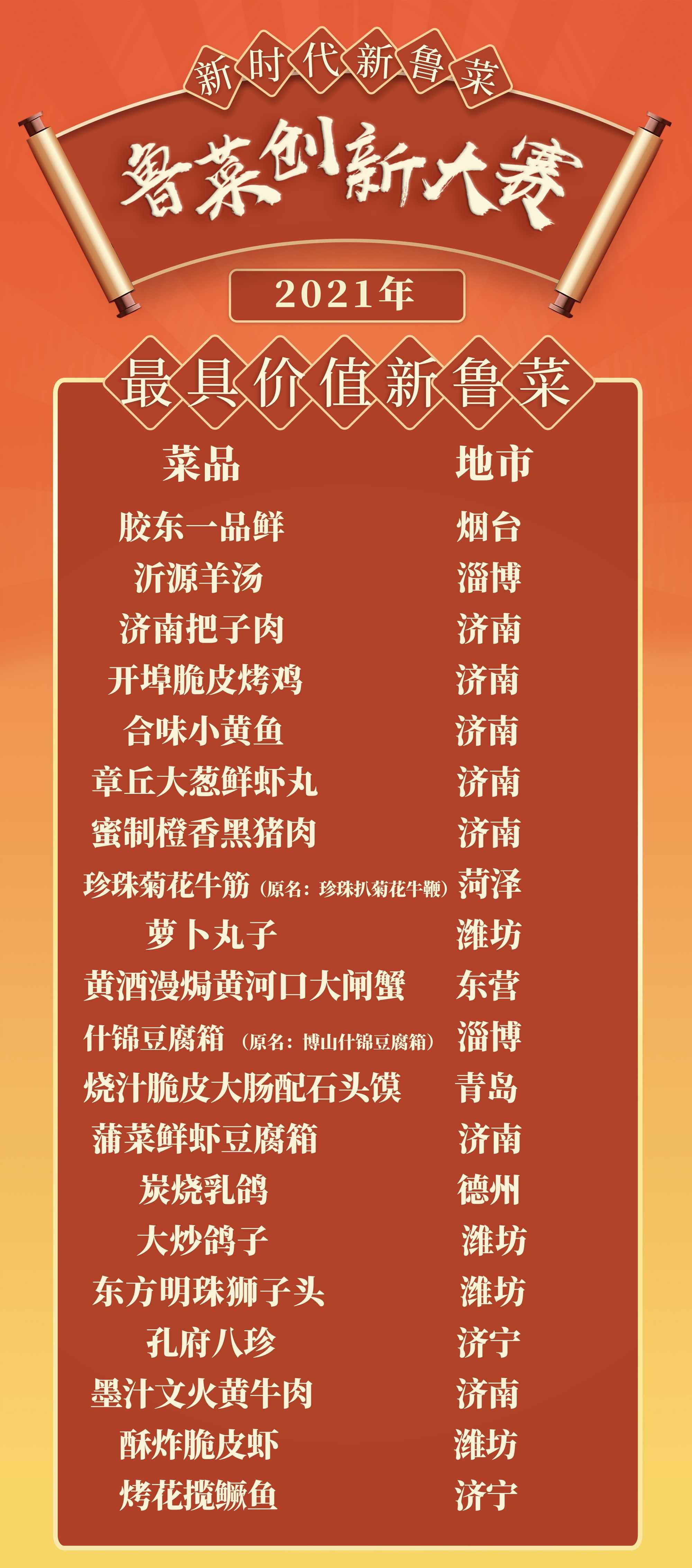 “新时代 新鲁菜”2021鲁菜创新大赛各奖项评选结果今日(1月7日)揭晓。