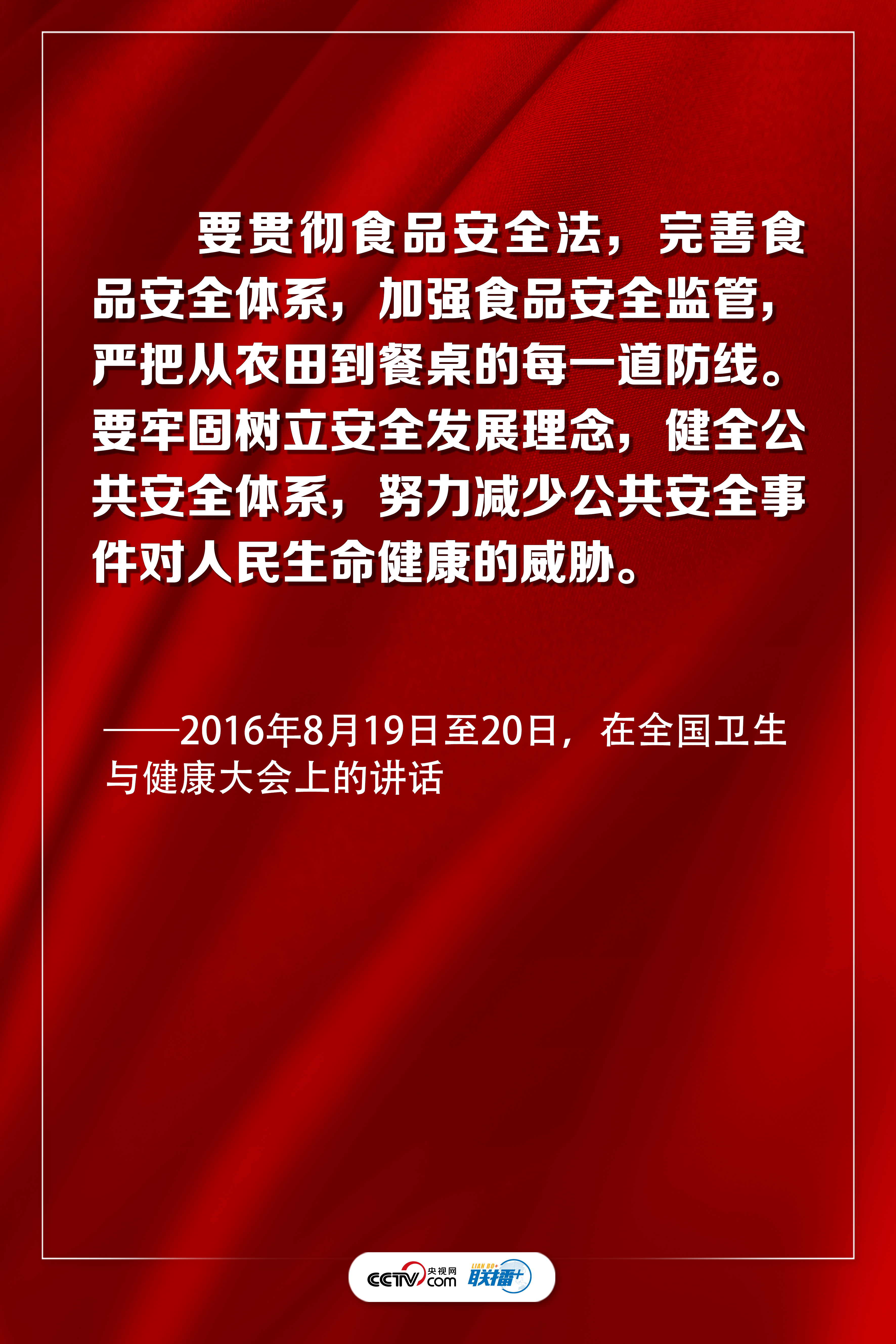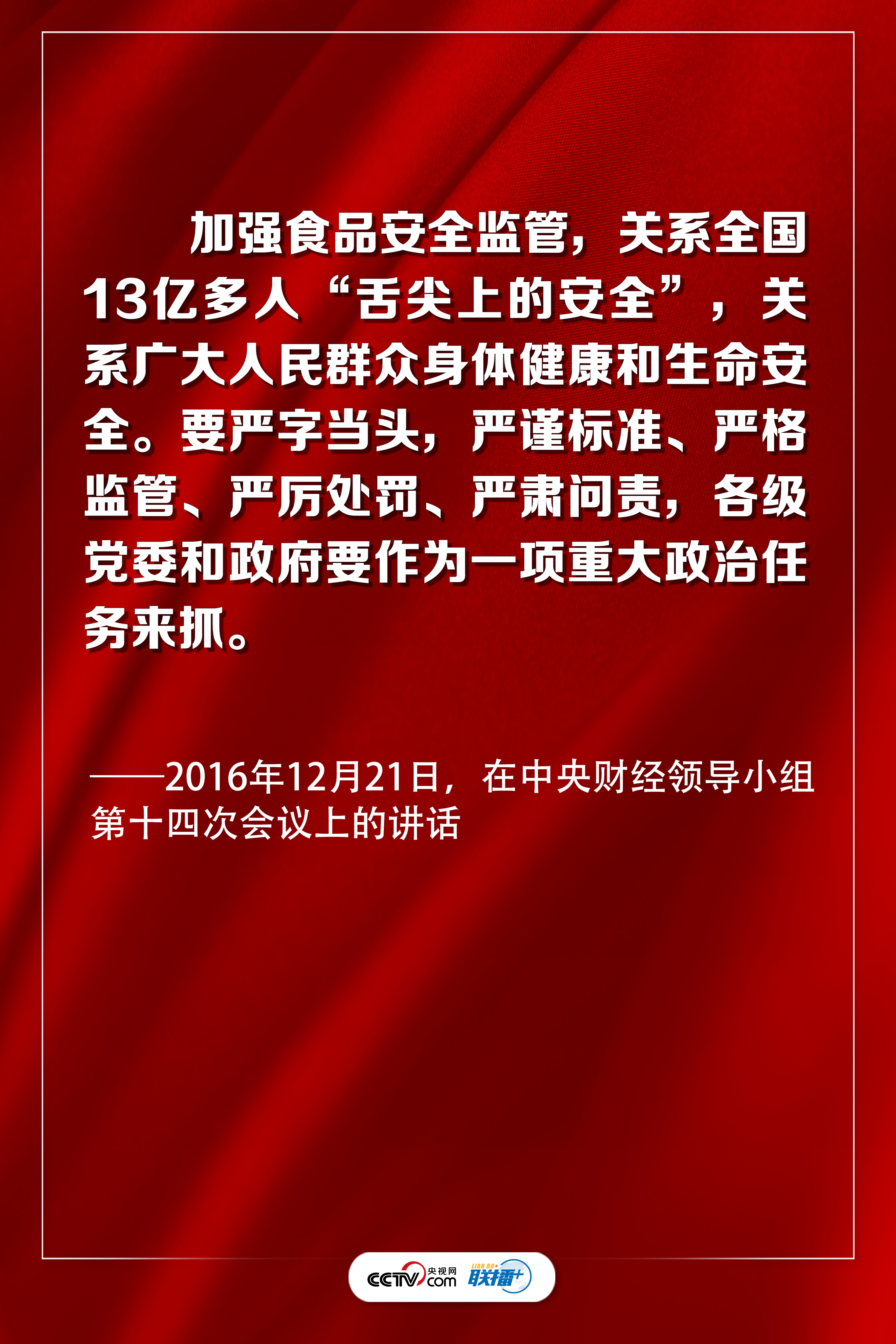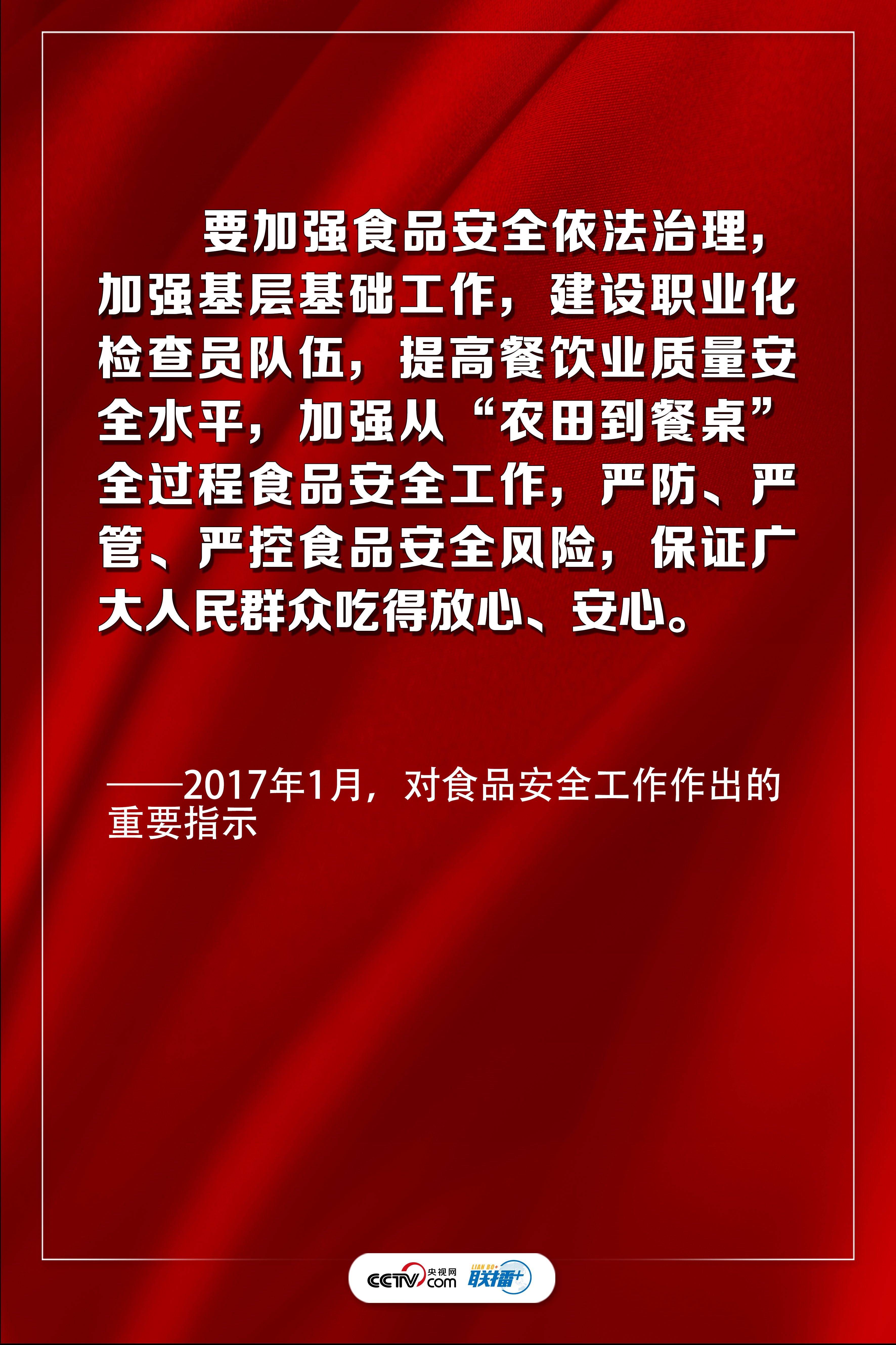 联播+“能不能在食品安全上给老百姓一个满意的交代,是对我们执政能力的重大考验。”民以食为天,食品安全关系到每一个人的健康,也是百姓最关心的民生问题之一。