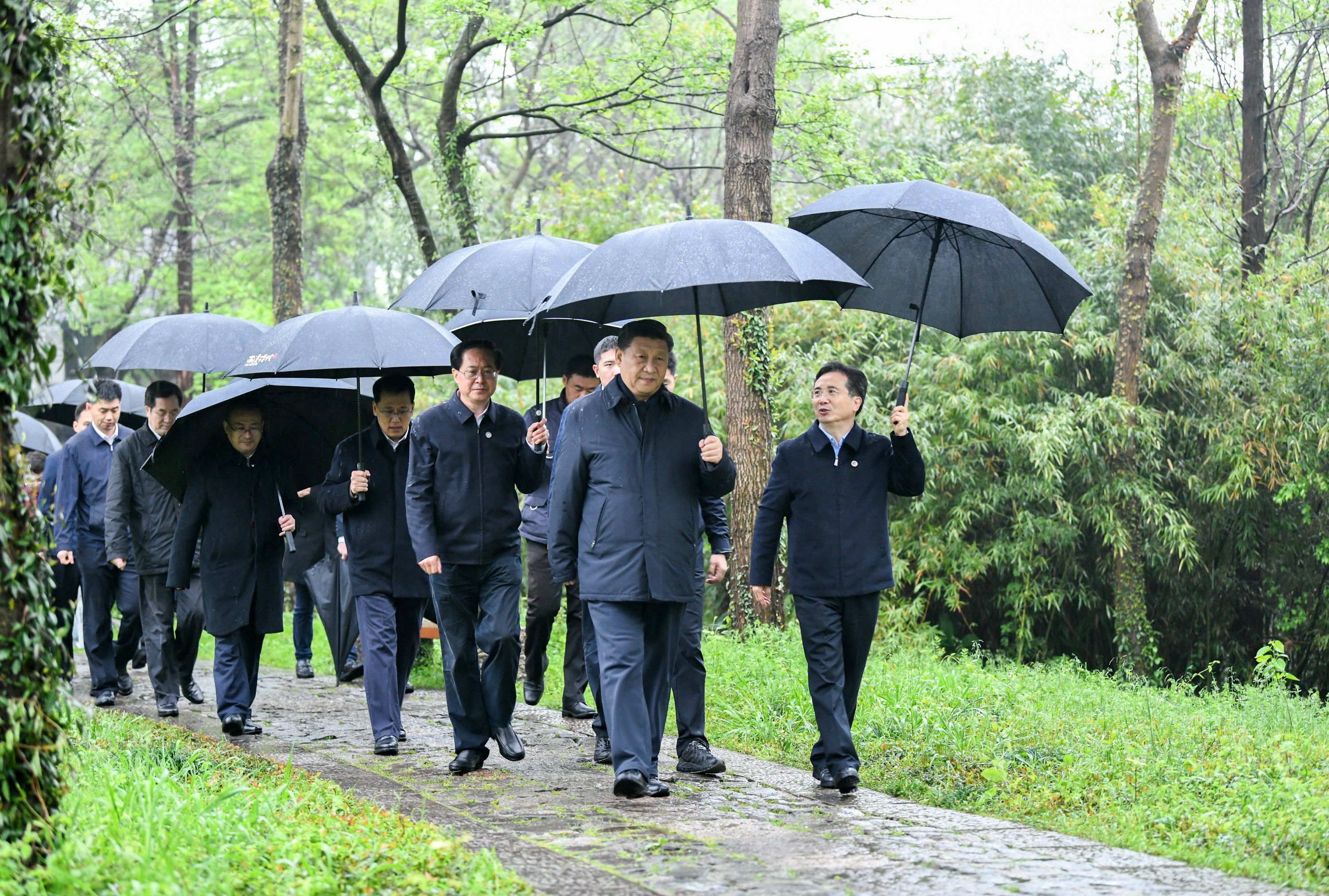 2020年3月31日,习近平在杭州西溪国家湿地公园察看湿地保护利用情况。