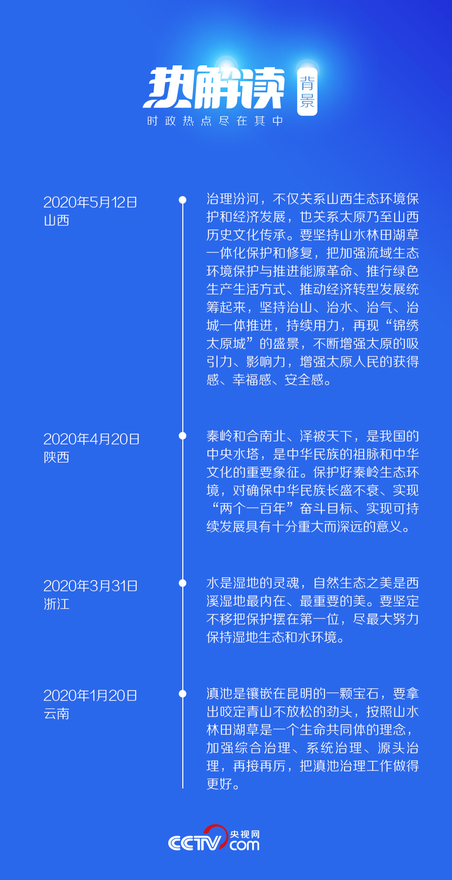 今年3月以来,习近平先后在浙江、陕西和山西考察,每一次都对生态环境保护、生态文明建设提出新要求,作出新指示。“水”一直是其中的重要方面。
