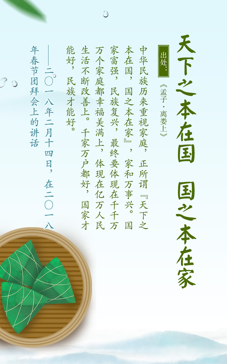 千百年来,端午节与端午文化凝结着中华民族的文化血脉和思想精华,“端午”二字也已成为传承、弘扬、激发民族精神和爱国情感的载体。习近平总书记在讲话中多次引用古文诗词阐述家国情怀。值此端午佳节来临之际,央视网《联播+》特梳理相关话语,与您一起学习感悟。
