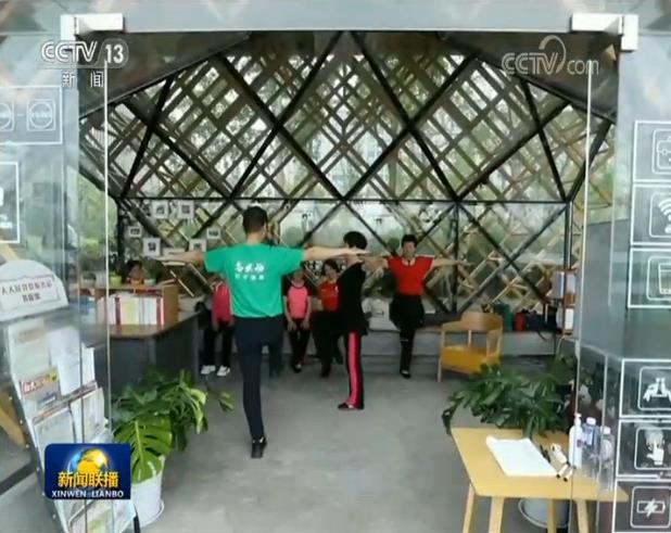 在浦江岸边的人人屋党群服务站,社区健康师高炳宏正在教周边的居民们如何有效地锻炼身体。
