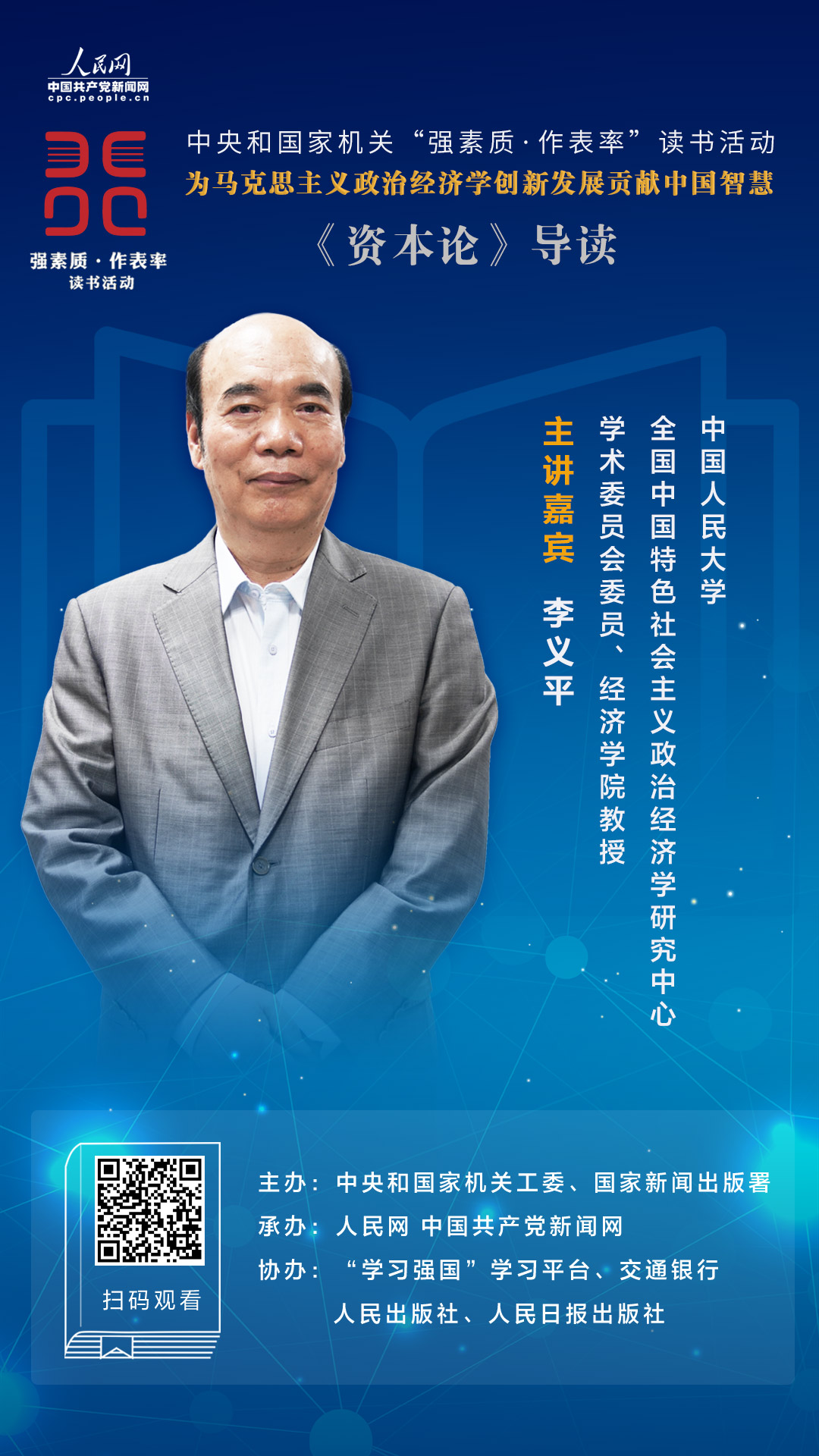 日前,2020年中央和国家机关“强素质·作表率”读书活动“重温马克思主义经典”系列举办第六讲,邀请中国人民大学全国中国特色社会主义政治经济学研究中心学术委员会委员、经济学院教授李义平做客讲堂,以“为马克思主义政治经济学创新发展贡献中国智慧”为主题,导读《资本论》。