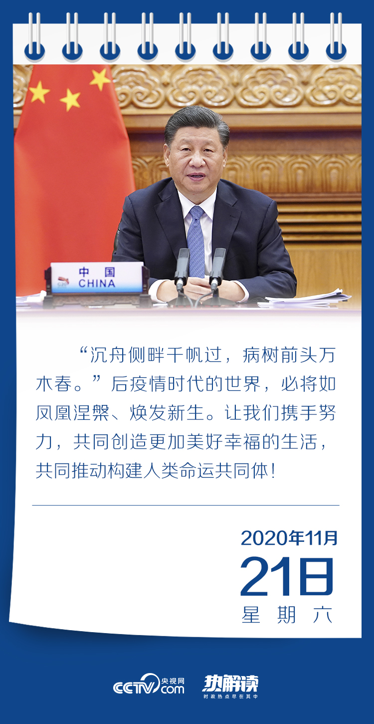 “世界是不可分割的命运共同体”,11月19日,习近平主席以视频方式出席亚太经合组织工商领导人对话会并发表主旨演讲时深刻指出。