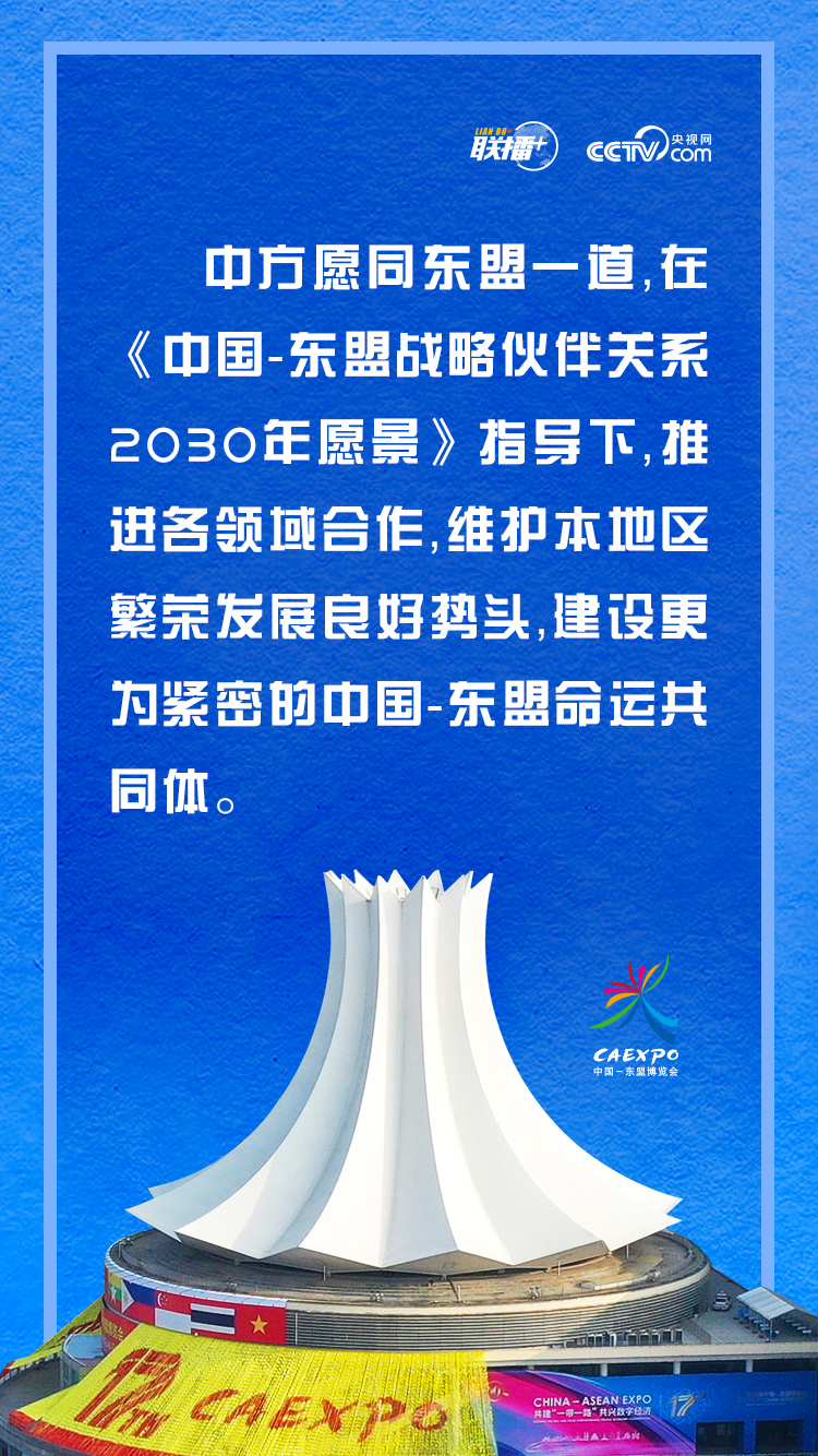 ●中方愿同东盟方携手努力,畅通贸易、促进投资,相互开放市场,推动双方产业链、供应链、价值链深度融合。