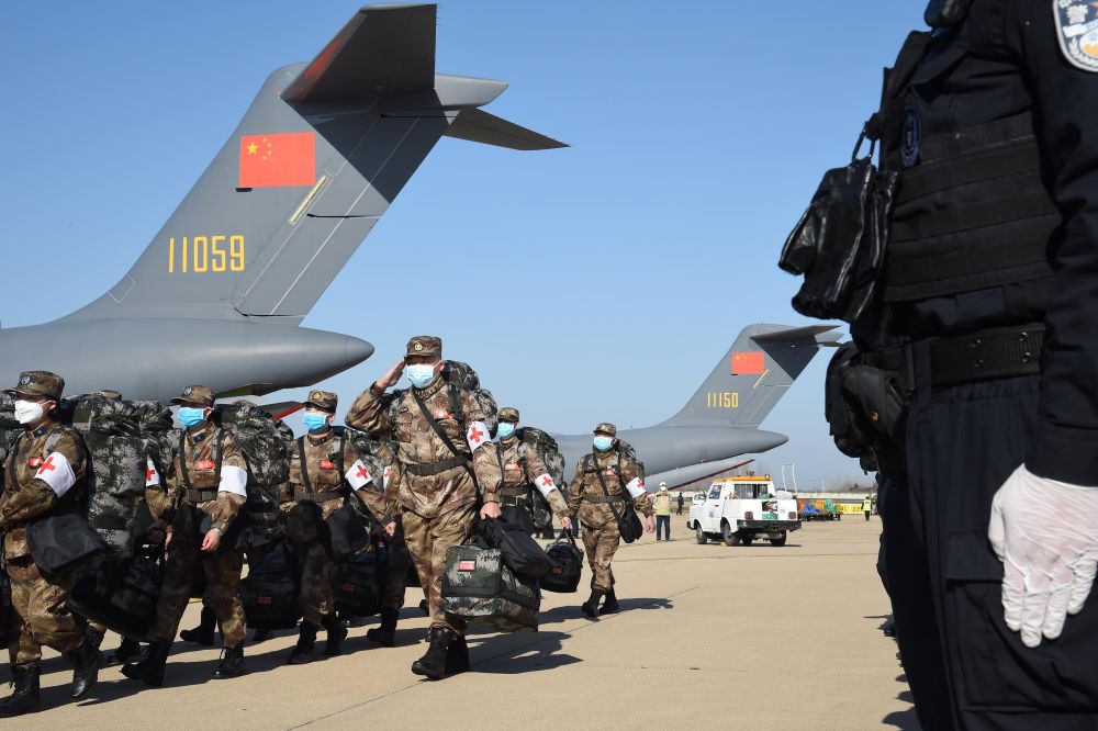 2月17日,军队支援湖北医疗队员抵达武汉天河机场。新华社记者 黎云 摄