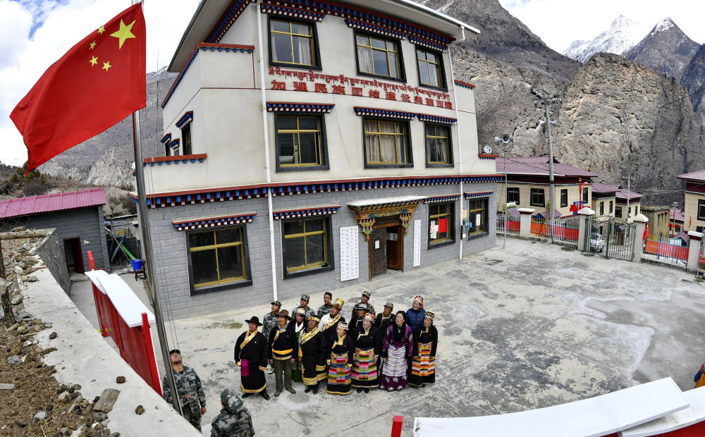 3月20日,西藏林芝市西日卡村村民代表在村委会小广场举行升国旗、唱国歌仪式。61年前,五星红旗在西日卡村冉冉升起,开启了一个村庄和一面国旗不可割舍的情怀。从此,升国旗成为这个雪域山村不变的传统。鲜艳的国旗,印记着西日卡村农奴翻身解放的岁月,见证着边陲村庄日新月异的变迁。新华社记者 张汝锋 摄