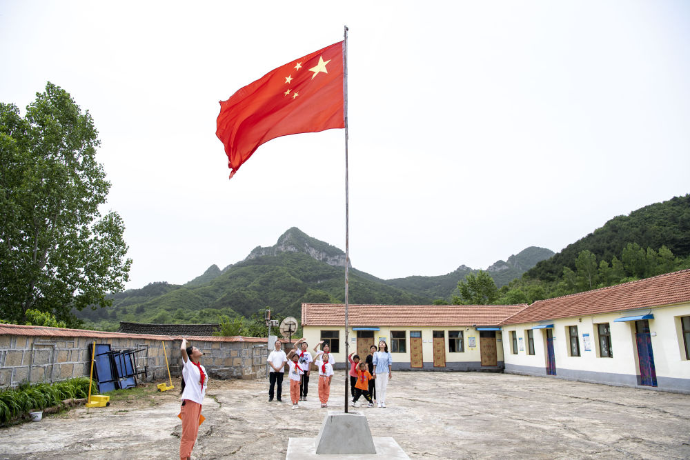 6月2日,位于山西省陵川县古郊乡的马武寨寄宿制小学举行升旗仪式。这所“麻雀小学”只有7名学生,是方圆几十公里内唯一的学校。新华社记者 杨晨光 摄