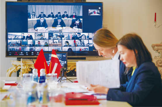 2020年3月13日,中国同中东欧17国举行新冠肺炎疫情防控专家视频会议,分享和交流疫情防控经验及信息。这是中国秉承人类命运共同体理念,为全球公共卫生安全事业作贡献的重要举措。图为在拉脱维亚首都里加,拉脱维亚卫生专家在中国驻拉使馆参加视频会议。新华社发 亚尼斯/摄