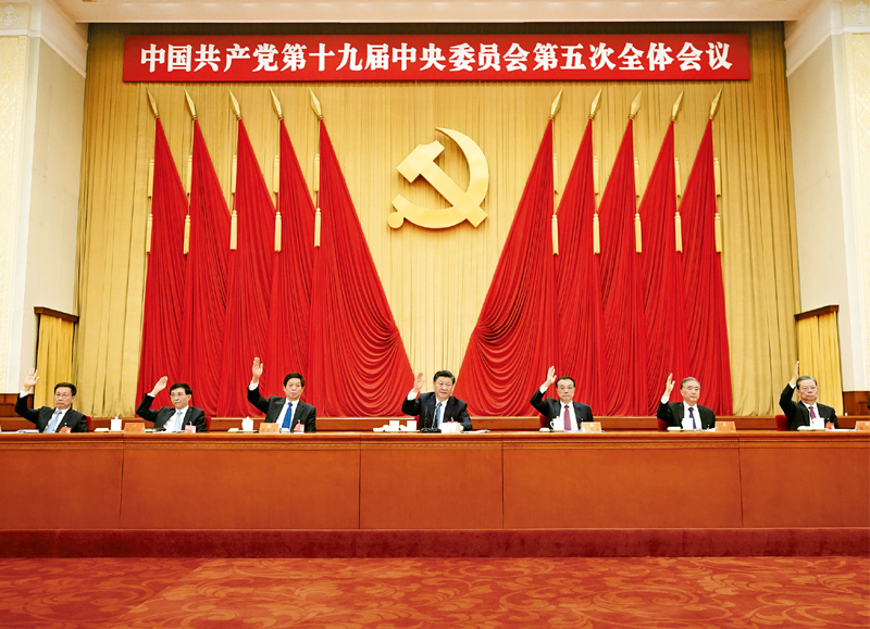 中国共产党第十九届中央委员会第五次全体会议,于2020年10月26日至29日在北京举行。中央委员会总书记习近平作重要讲话。新华社记者 鞠鹏 摄