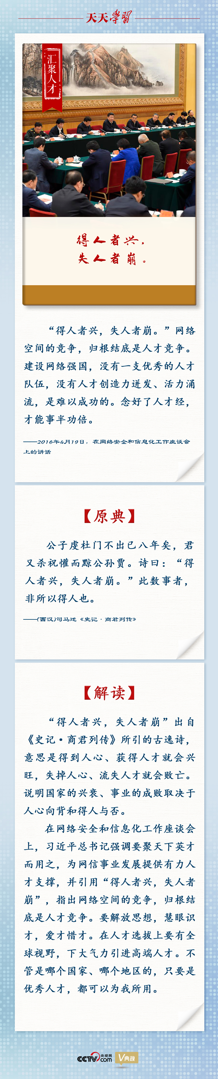 习近平总书记围绕网络强国建设发表了一系列重要论述,并引经据典加以阐述,赋予这些典故鲜活的时代价值。央视网《天天学习》与您一起回顾学习。