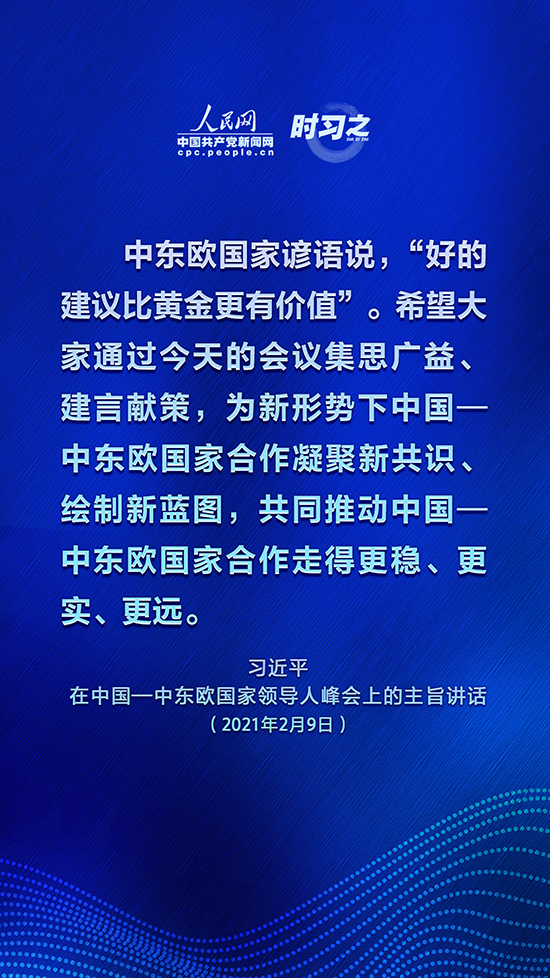 2月9日,国家主席习近平在北京以视频方式主持中国—中东欧国家领导人峰会并发表主旨讲话。中国—中东欧国家合作为何能保持旺盛生命力?新形势下,中国—中东欧国家合作如何发展?人民网·中国共产党新闻网“时习之”栏目摘录了习近平的精彩讲话,与您一起学习。