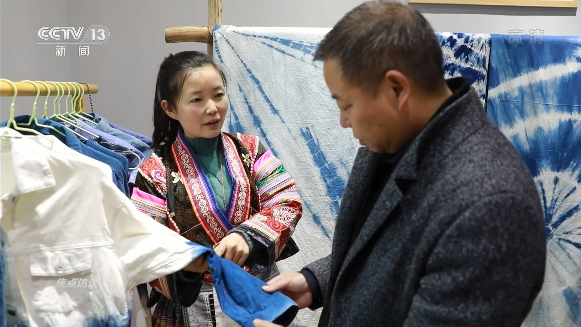 正向游客介绍苗族服饰的女孩叫彭艺,是扶贫车间里的蜡染师,从小在化屋村长大的她,对传统的蜡染刺绣有着深厚的感情,研究生毕业后,她毅然选择了回乡创业。