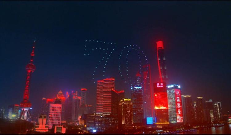 视频 | 浦东70幢高楼闪亮红色天际线!百架无人机拼出“中国”“70”字样