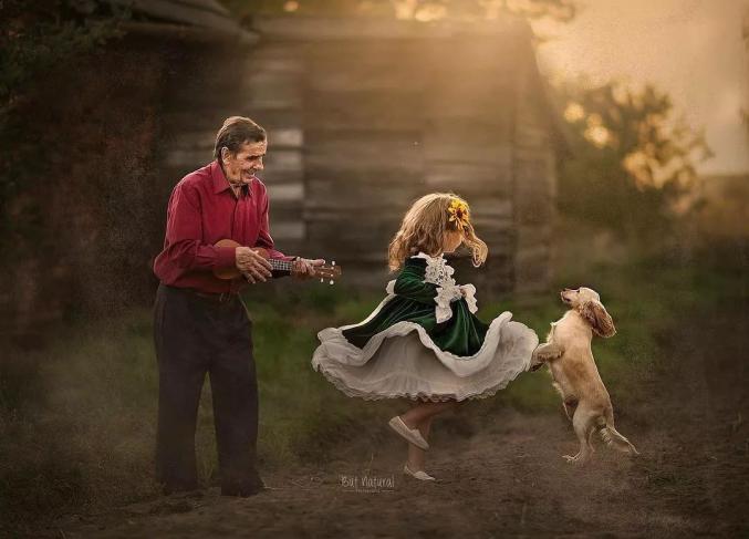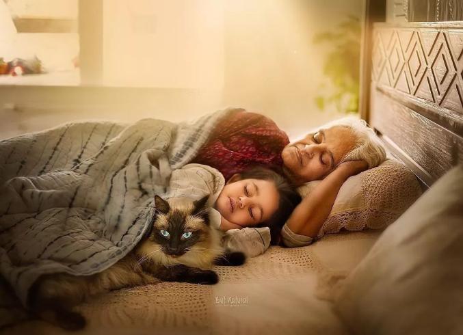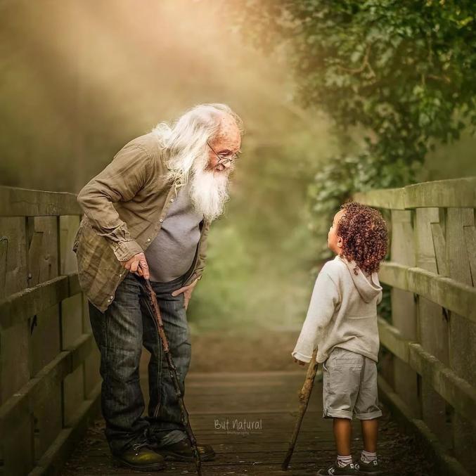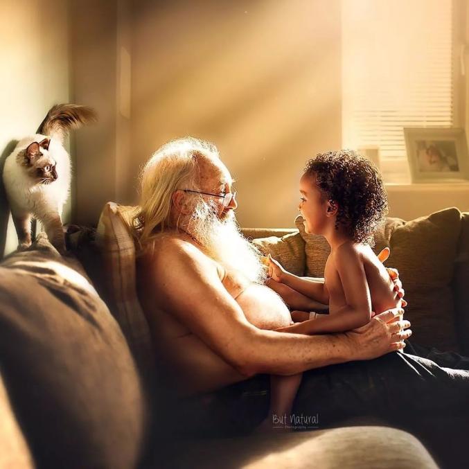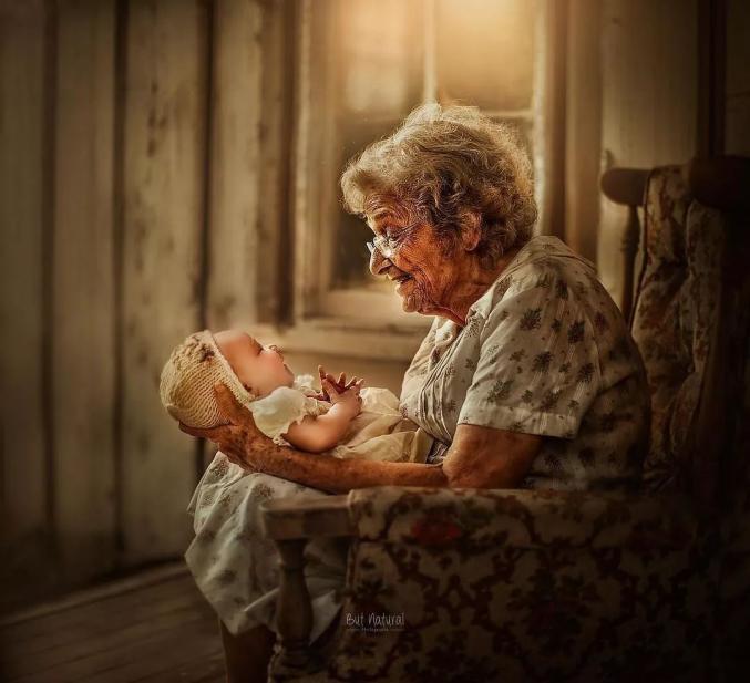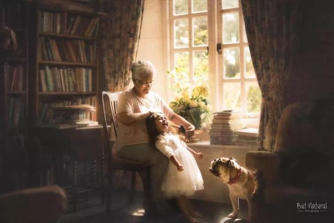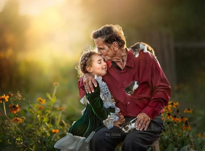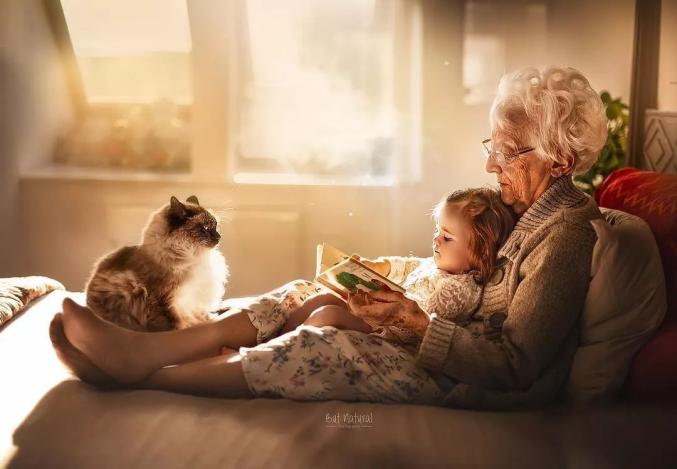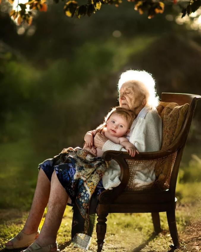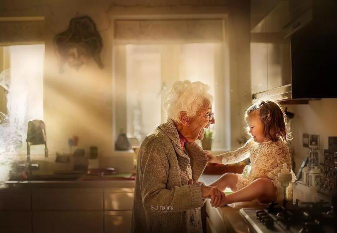 祖孙之间温馨画面的写真照,