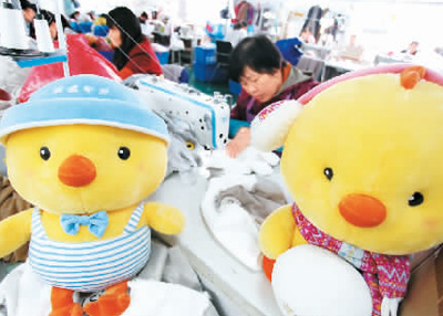 在有“中国毛绒玩具礼品之都”之称的江苏省扬州市邗江区一家毛绒玩具厂车间内,工人们在加工毛绒玩具,为年末的购物热潮做准备。 |