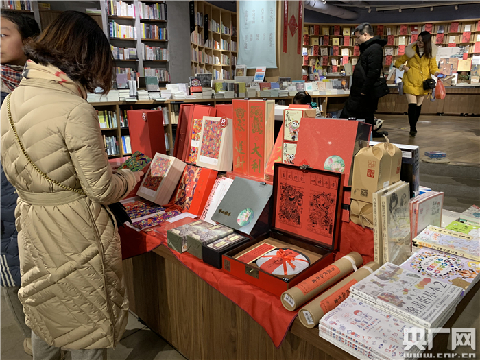 2月8日,正月初四,青岛方所书店内,顾客正在欣赏以春节为主题的年画周边产品。(央广网记者 孙冰洁 摄)