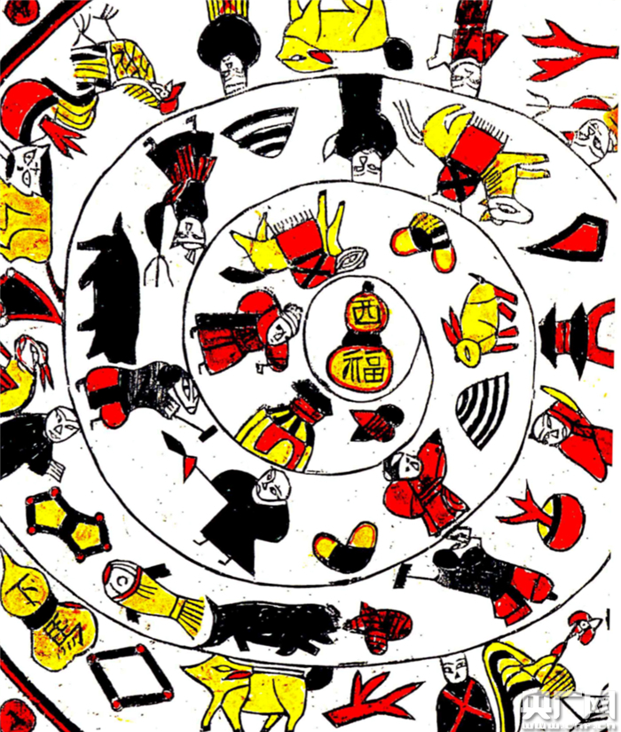 山东青岛平度年画《逍遥图》。(央广网记者 孙冰洁 摄)