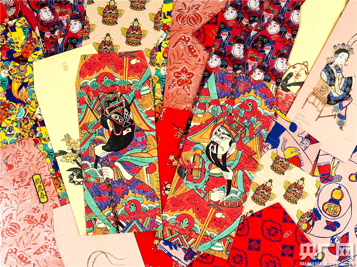 除年画外,现场还展出了不少以年画为灵感来源的周边文创产品:印有门神头像的红包、手账、书签以及行李牌等。(央广网记者 孙冰洁 摄)