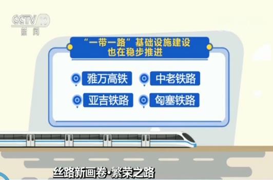 “一带一路”基础设施建设也在稳步推进,雅万高铁、中老铁路、亚吉铁路、匈塞铁路等项目建成或顺利推进。以中巴、中蒙俄、新亚欧大陆桥等经济走廊为引领,陆海空通道和信息高速路为骨架,铁路、港口、管网等重大工程为依托,一个复合型的基础设施互联互通网络正在不断完善。