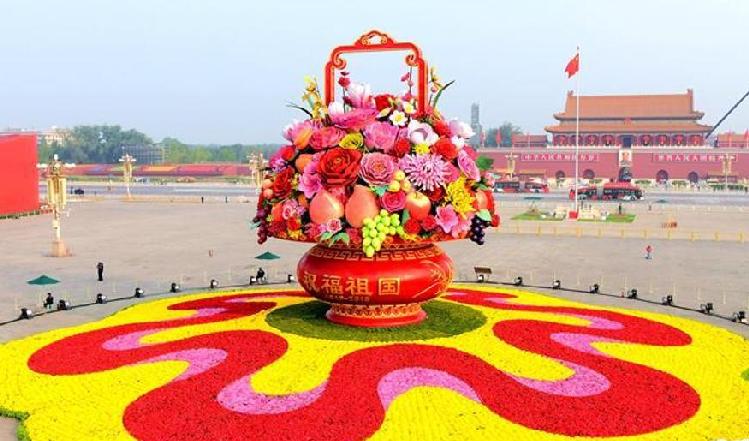 7小时组装!18米高巨型“花果篮”亮相天安门广场